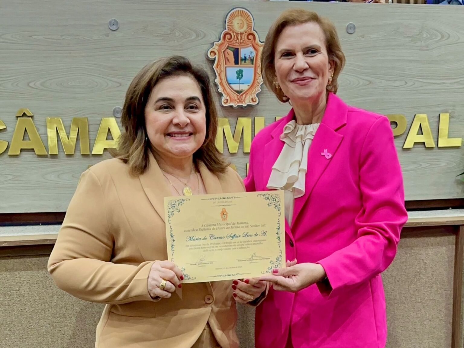 Convidada de honra da sessão solene em homenagem ao Dia dos Professores, Maria do Carmo destacou a necessidade de valorização da categoria, que é a base da educação.“Depois dos nossos pais, nossos heróis são nossos professores. Eles formam cidadãos e merecem ser valorizados e respeitados”, afirmou Maria do Carmo, que tem mais de 23 anos dedicados à educação, como gestora do Grupo Fametro, a maior instituição de ensino superior da Região Norte e a sexta do Brasil. A solenidade foi uma autoria da vereadora Yomara Lins (Podemos) em reconhecimento ao importante serviço prestados pelos professores para a sociedade.“É professor e aluno, essa é a relação da sala de aula que faz a educação acontecer. Não é possível ter ensino de qualidade sem professor valorizado. Aliás, enquanto não se investir com seriedade em políticas públicas para qualidade da educação em Manaus, no Amazonas e no Brasil, não teremos o verdadeiro progresso”.