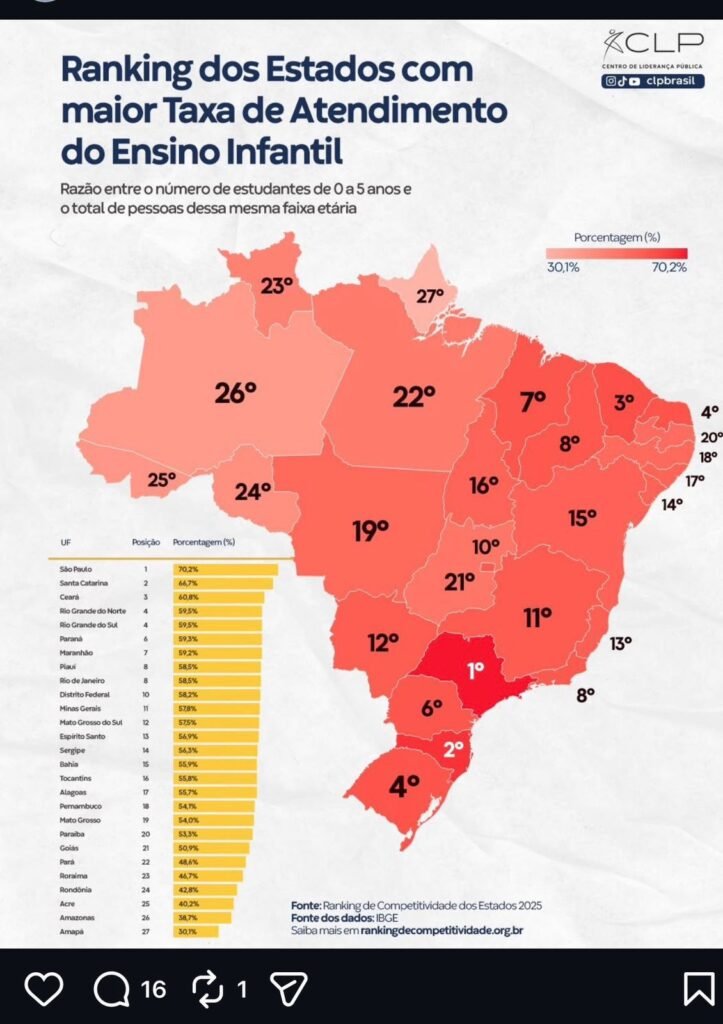 Na última semana, o Centro de Liderança Publica (CPL Brasil) publicou um novo estudo que confirma a dificuldade de acesso de crianças com idade até cinco anos ao ensino público no Amazonas. O Estado ocupa a penúltima posição entre as demais federações (26º lugar) com a maior taxa de atendimento do ensino infantil. “Estamos entre os piores do Brasil quando o assunto é garantir creche e pré-escola para crianças de 0 a 5 anos. Isso não é número frio. Isso é criança fora da escola. É mãe sem conseguir trabalhar. É pai se virando como pode. É o futuro sendo abandonado logo no começo da vida”, disse a pré-candidata ao governo Professora Maria do Carmo (PL), que usou suas redes sociais nesta segunda-feira, 5/1, para divulgar o levantamento e jogar luz sobre um tema que tem sido negligenciado pelos governantes. “O pior de tudo é saber que quem deixou a educação do nosso Estado chegar a esse ponto, quem foi responsável por esse atraso, daqui a pouco vai aparecer com a cara lavada pedindo voto. Tudo para não ficar longe do poder”, criticou a pré-candidata, afirmando ainda que os atuais gestores públicos estão acostumados a fazer promessas vazias, enquanto o povo está abandonado. Professora desde os 16 anos e atualmente reitora de uma universidade privada, Maria do Carmo tem defendido que a educação é a base que garante o verdadeiro desenvolvimento da sociedade e que o ensino de qualidade precisa virar prioridade nas políticas públicas. “Quem governa precisa cuidar da base. E quem não cuidou, quem deixou nossas crianças para trás, não pode continuar mandando no destino do Amazonas. Está na hora de virar essa página. De tirar os aproveitadores do dinheiro público e colocar gente séria para governar. Nossas crianças merecem mais. O Amazonas também”, finalizou a Professora Maria do Carmo. FOTO – Assessoria MC